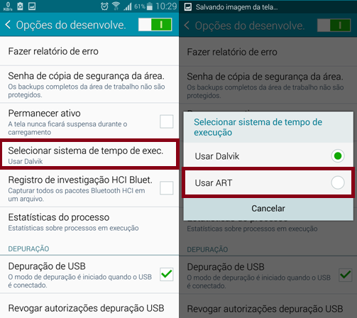 Como mudar o meu Runtime de Dalvik para ART?