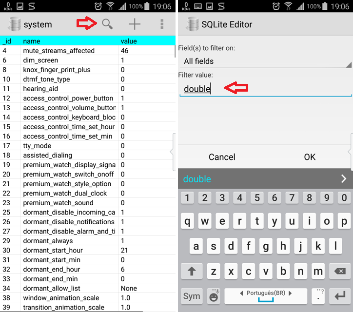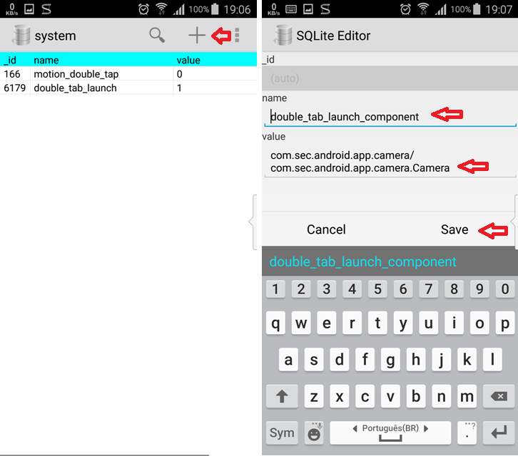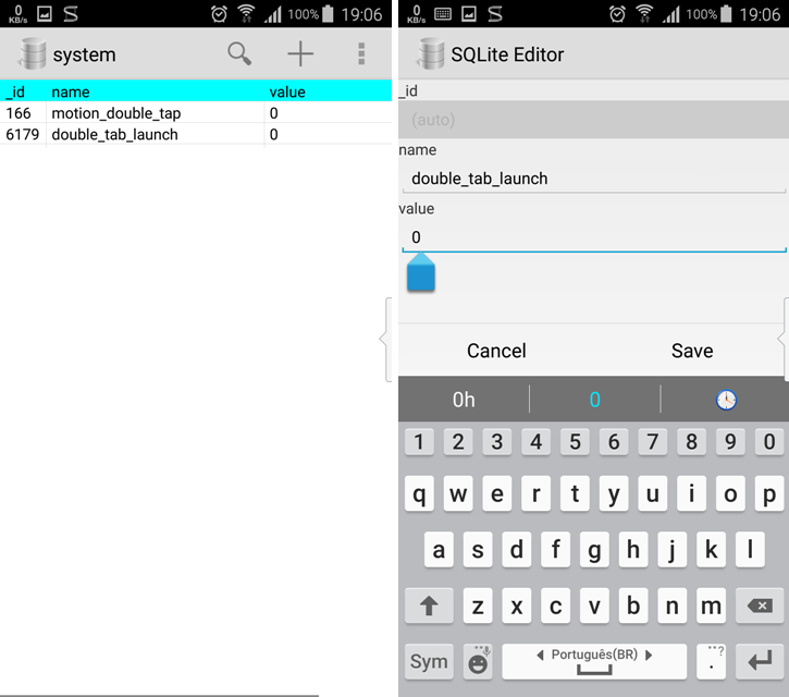 5 - Clique em "double_tap_launch" e substitua o valor "0" por "1" e clique em "Save":